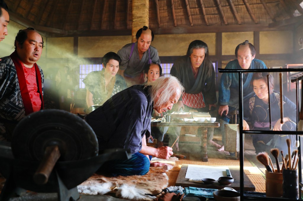 On notera enfin la performance d’Hiroshi Abe dans le rôle de Juzaburo Tsutaya, un éditeur historique et Pygmalion de son époque (dont on ne mettrait d’ailleurs pas notre main à couper qu’il a factuellement collaboré avec Hokusai).
