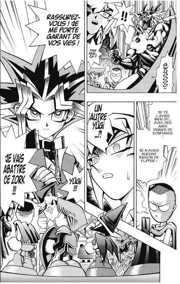 Cela permet à Yu-Gi-Oh! d’occuper une place spéciale : celle d’un manga à la croisée des chemins entre science-fiction et fantasy. Il ne s’agit pas juste de donner des flingues bioniques à des samouraïs, puisque ces deux registres sont dans l’œuvre les deux faces d’une même pièce. Dans une Égypte ésotérique antique dominée par des prêtres donnant vie à des tablettes, ou dans un crypto Japon où le jeu se consomme sur des appareils toujours plus modernes, l’histoire se répète, et les mêmes personnalités s’incarnent dans des protagonistes différents.