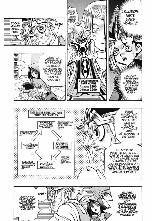 Ce ne sont pas les cartes qui ont dévoré Yu-Gi-Oh!, mais bien l’inverse, puisque l’influence du manga sur son produit dérivé ne s’arrête pas là. Lors de la parution des deux premiers chapitres où Magic & Wizards apparaît (ainsi que le désormais infamous Seto Kaiba), il s’agissait d’un pastiche du déjà célèbre Magic : The Gathering, déjà très populaire aux États-Unis. Kazuki Takahashi, n’ayant pas pu se résoudre à reprendre les règles du jeu, incompatibles avec le rythme nerveux d’un manga sérialisé, dût inventer un nouveau système de jeu.