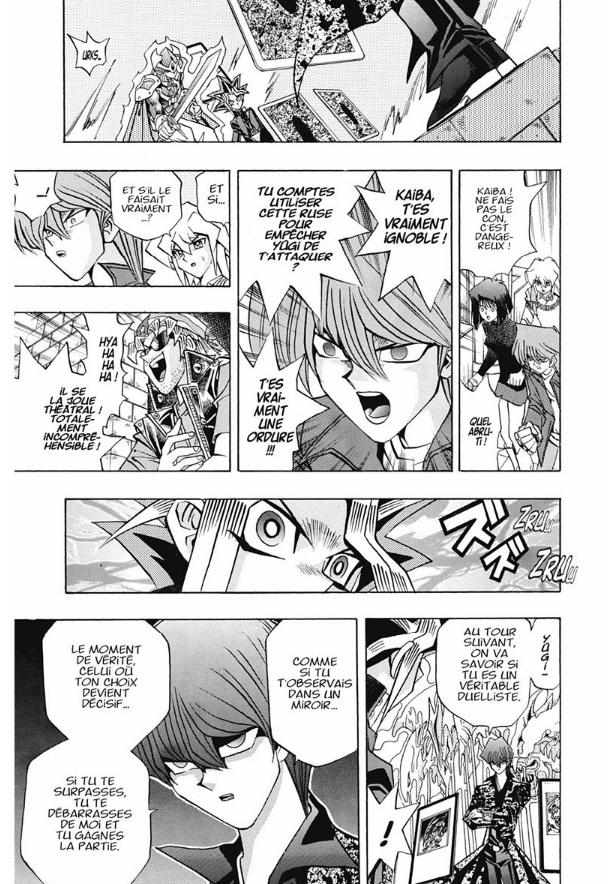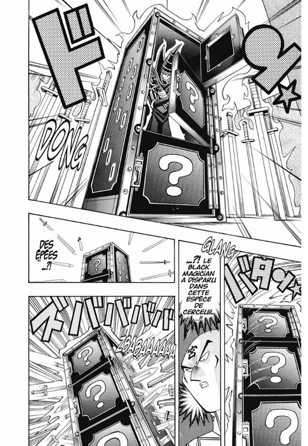 Le macabre n’est d’ailleurs pas que l’apanage des forces antagonistes dans Yu-Gi-Oh!, pas aussi manichéen qu’on peut l’entendre. Le tome trois voit par exemple l’apparition de Shadi, un personnage mystérieux, soucieux de rencontrer à nouveau « l’autre Yugi ». Pour le forcer à apparaître, le gardien des objets du Millénium n’hésite pas à piéger le groupe de protagonistes dans un jeu où une défaite du Pharaon entraînerait le suicide d’Anzu, l’un des personnages principaux de la série.